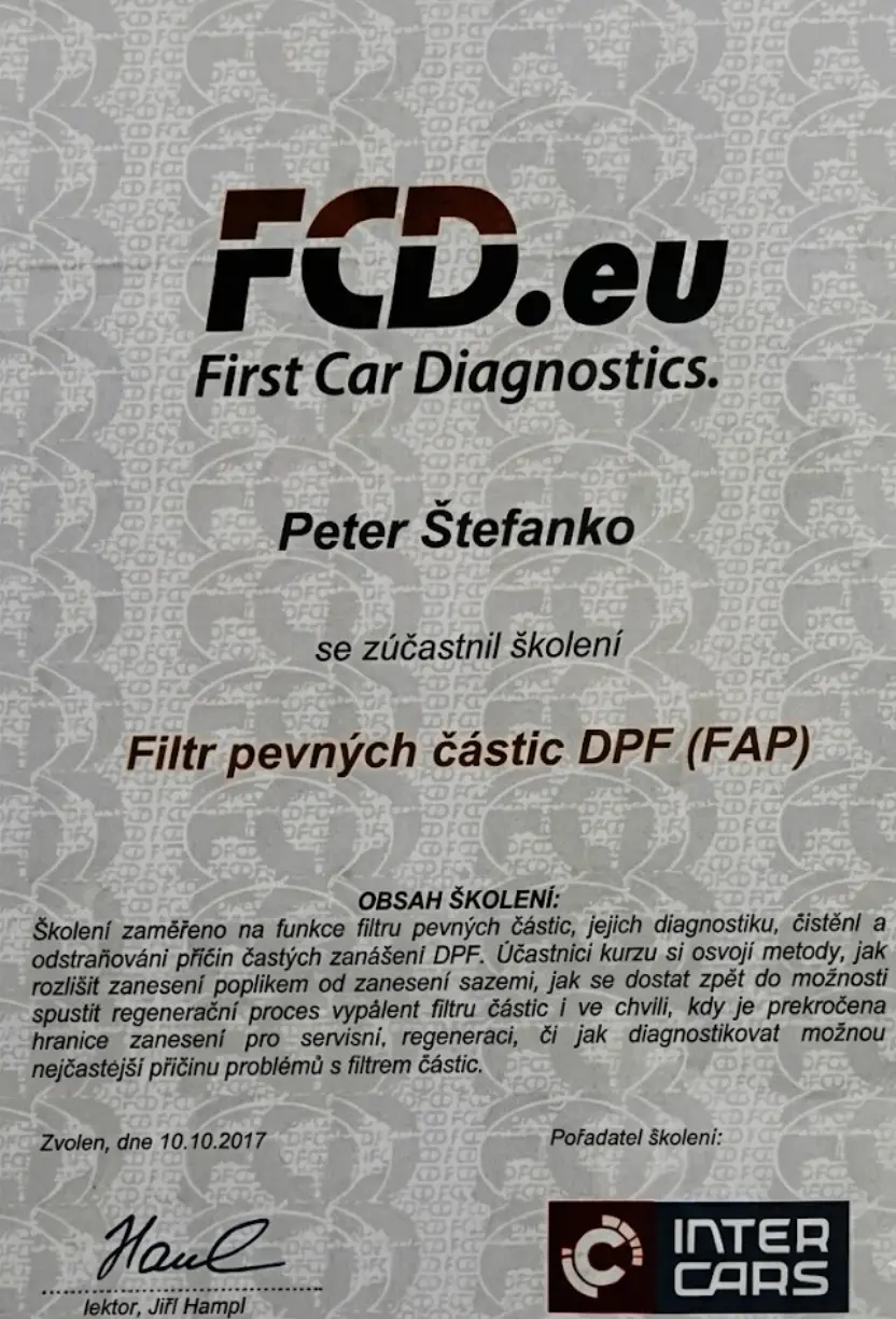 Naši mechanici pravidelne absolvujú odborné školenia a certifikácie.